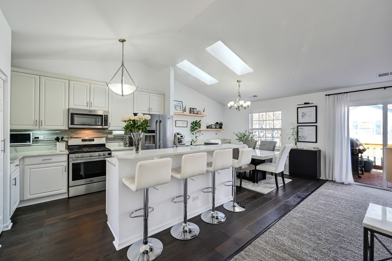 Step into this updated, move-in-ready 2-bedroom, 2.5-bath townhome that perfectly blends comfort and charm. From the moment you enter, you'll be greeted by a sunlit interior, thanks to skylights that bathe the space in natural light. The soaring vaulted ceiling adds an airy, open feel to the home, making it a true retreat. The thoughtfully designed layout offers both a private balcony and a walk-out patio-perfect for sipping your morning coffee, hosting friends, or simply unwinding after a long day. Both bedrooms are generously sized, offering comfortable retreats with plenty of closet space for all your storage needs. Each bedroom is ensuite, providing ultimate convenience and privacy. The primary suite is a standout, featuring its own luxurious private bath where you can unwind in style. The second ensuite bedroom is equally versatile-perfect for family members, guests, a home office, or whatever suits your lifestyle. A spacious two-car garage provides ample room for vehicles, storage, or even a small workshop, while the convenience of an electric charger ensures this home is ready to meet the needs of modern living. Whether you're enjoying a quiet evening at home or entertaining guests, this townhome delivers style and functionality at every turn. Nestled in a prime location, you're just steps away from parks, grocery stores, and a variety of local restaurants. Whether you're looking for outdoor adventures or your next favorite dining spot, everything you need is right at your fingertips. In a neighborhood where opportunities like this rarely appear, this is your moment to secure something truly unique. Don't let it slip away!